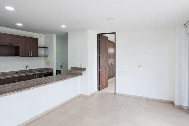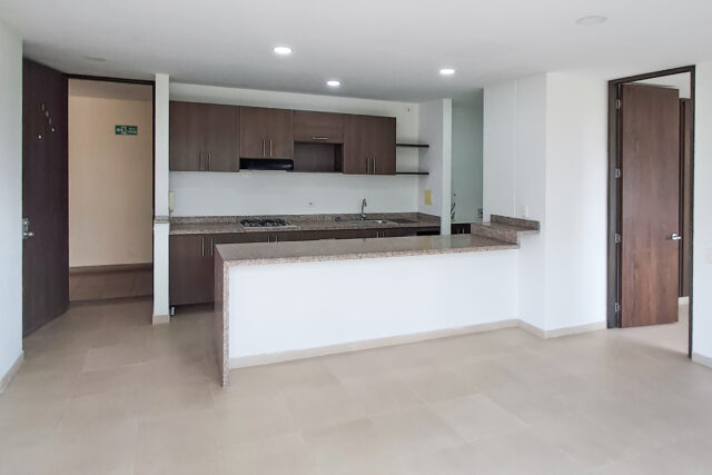 • Ambientes Integrados: Sala-comedor conectada a una cocina de concepto abierto con barra auxiliar.